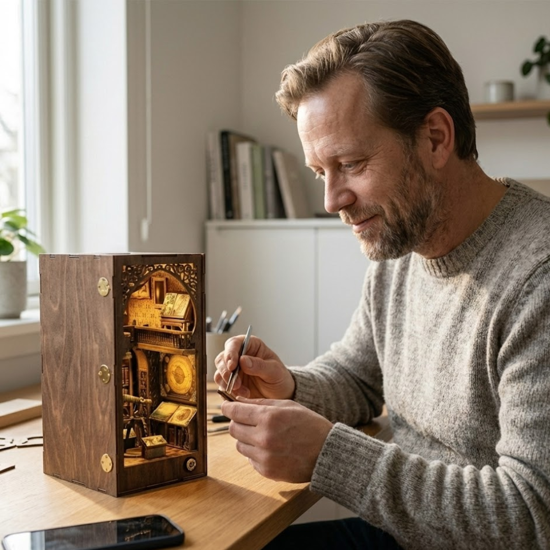 💡 Oui, tout est inclus : pièces en bois, éclairage LED, câbles, accessoires et instructions. Vous n'avez besoin de rien d'autre pour créer votre mini-univers.
